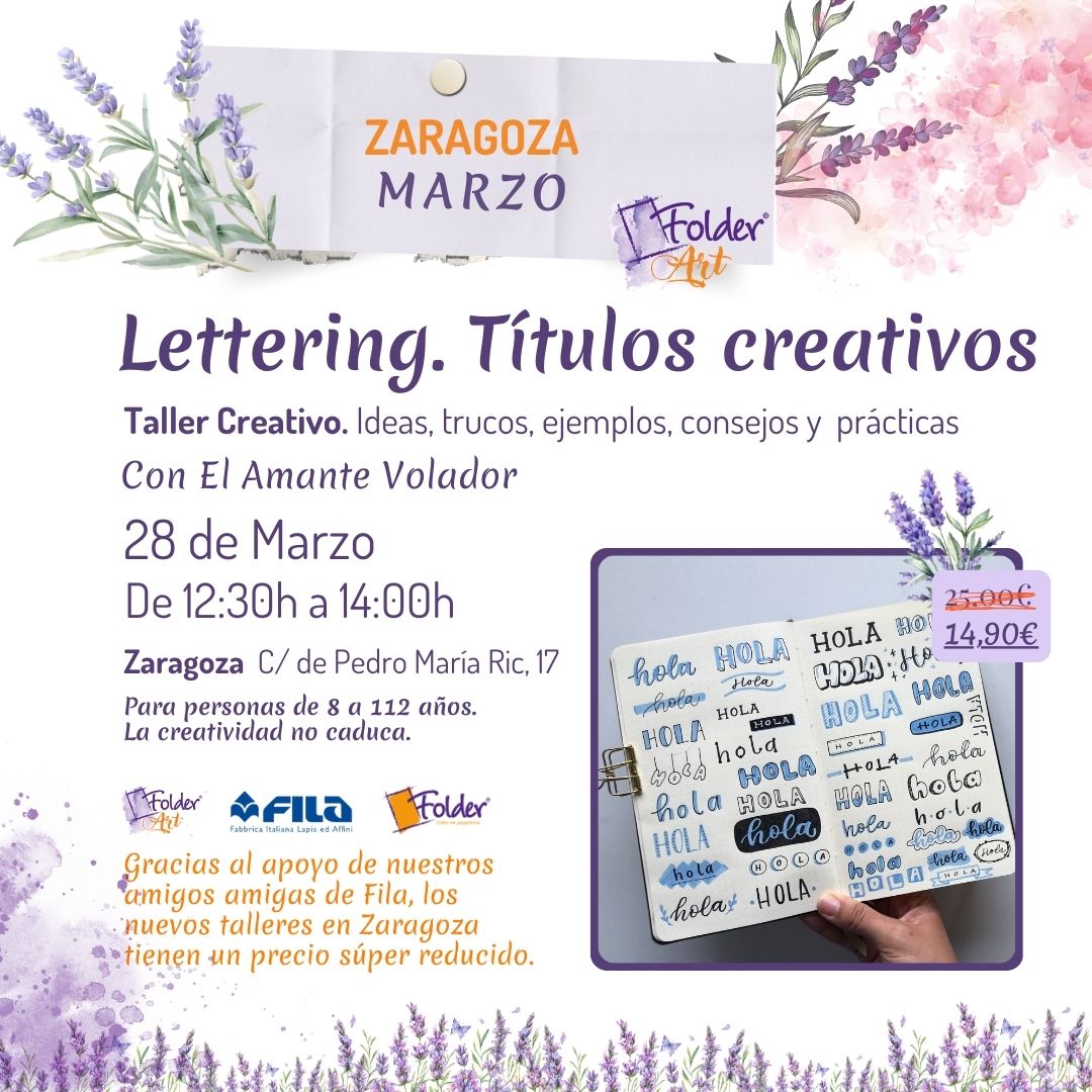 En este taller de Folder Art Zarqgoza, nos olvidamos de la escritura monótona para centrarnos en el lettering y los títulos creativos . Junto a El Amante Volador, aprenderás a crear letras bonitas a decorar tus textos de forma rápida, creativa y súper efectiva.